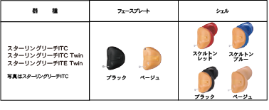 スターリングリーチ ITE Twin今回の電池式オーダーメイド耳あな型補聴器は、IICとCICに続き、カラーを選ぶことが出来ます。